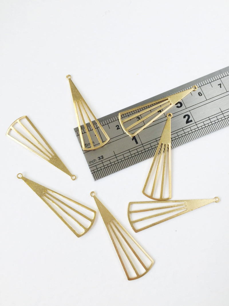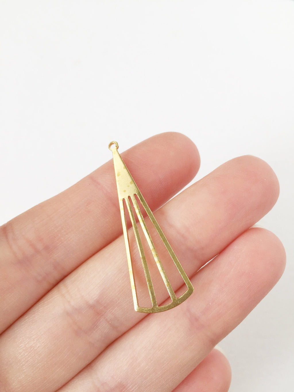 4 x Raw Brass Elongated Fan Pendants, 39x13mm (C0602)