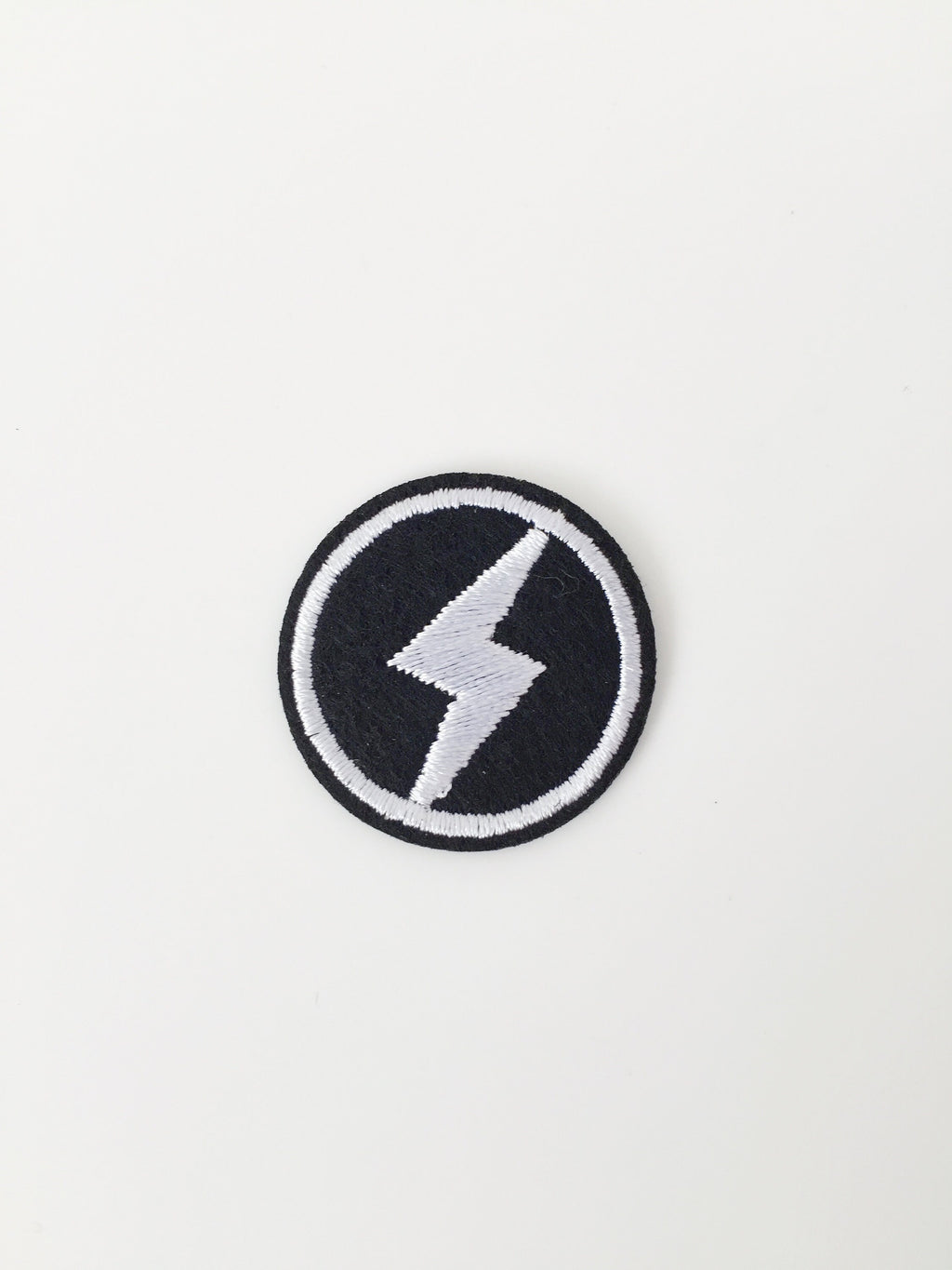 Black and White Lightning Bolt Iron-on Patch, Pop Culture Fun Badge
