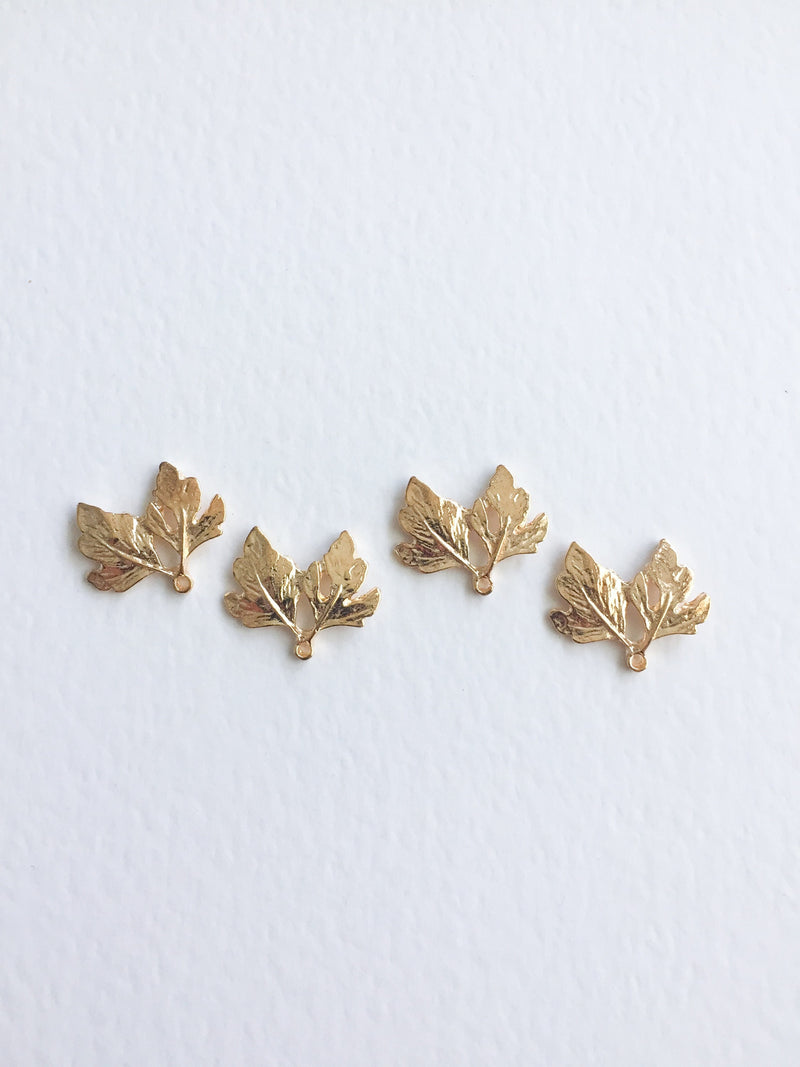 4 x Champagne Gold Double Leaf Charms, 22x18mm