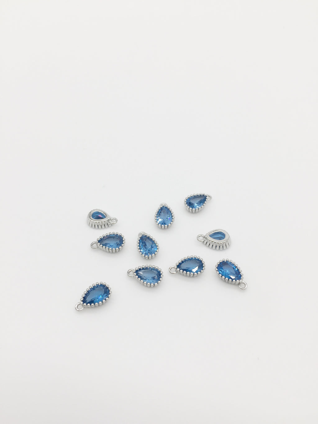 Rhodium plated cubic zirconia teardrop charm, blue colour