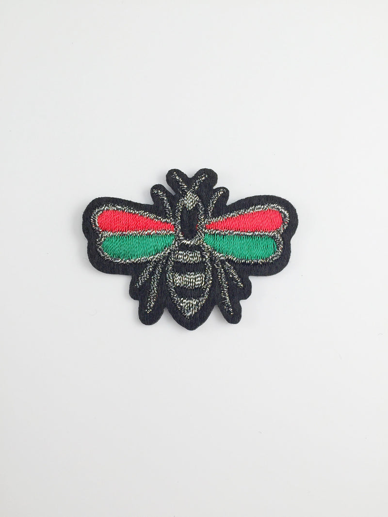 Green and Red Bee Iron-on Patch, Queen Bee Motif