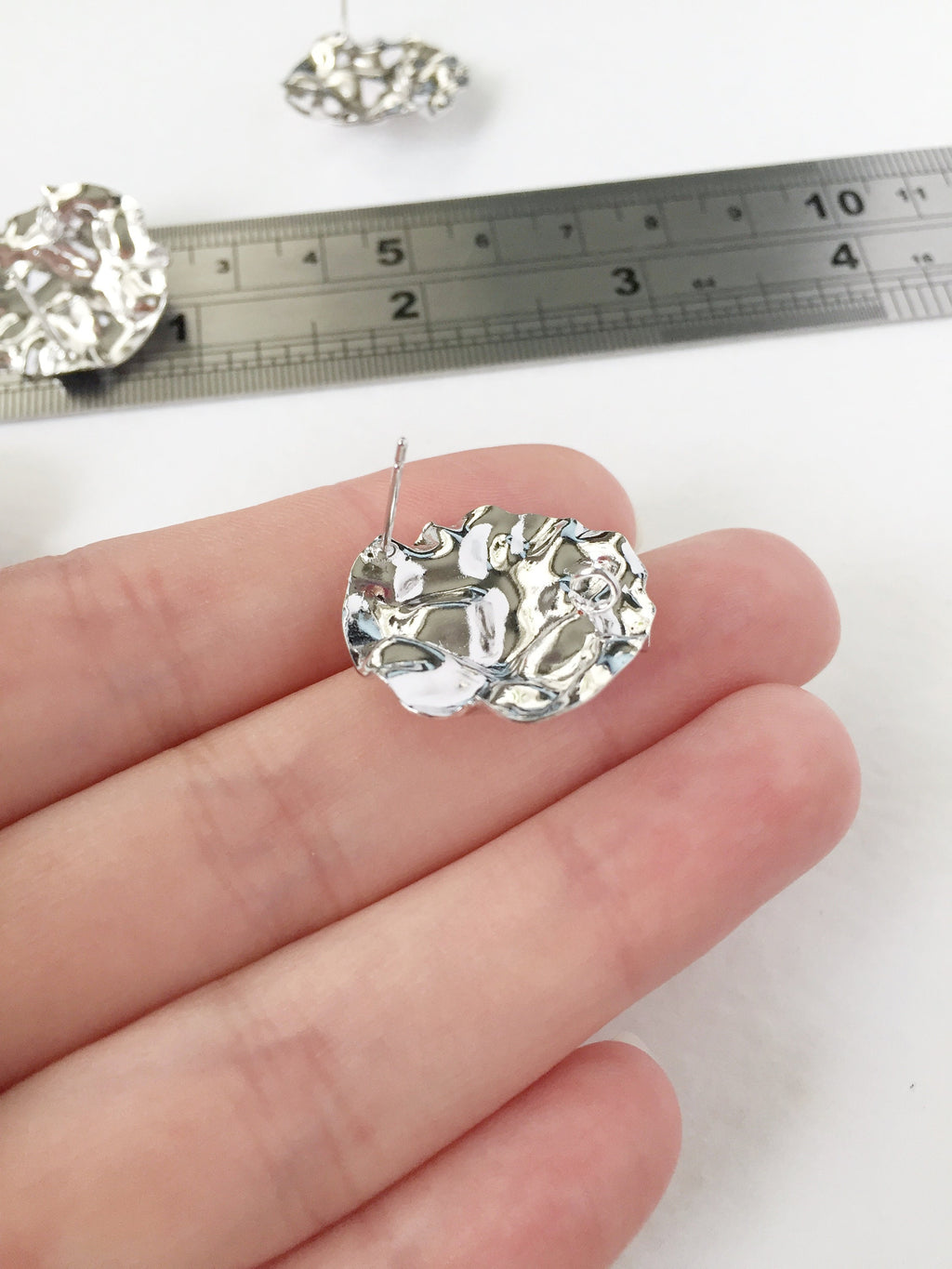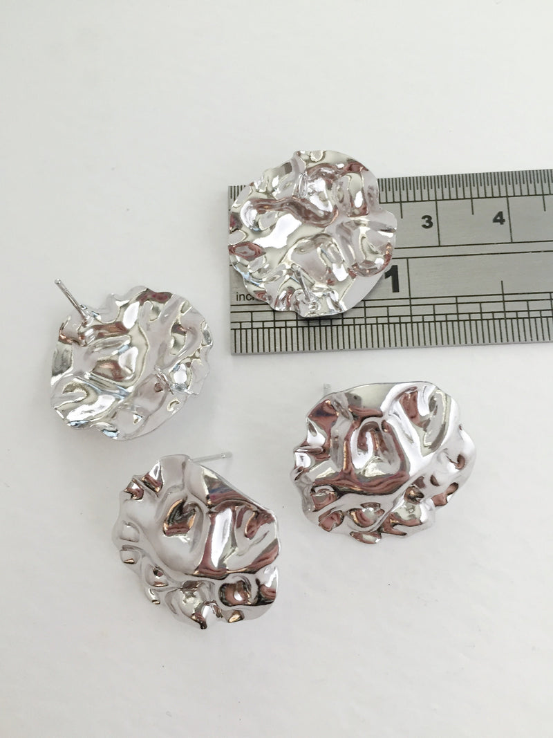 1 pair x Platinum Plated Crinkled Circle Earring Studs with Loops (0836)
