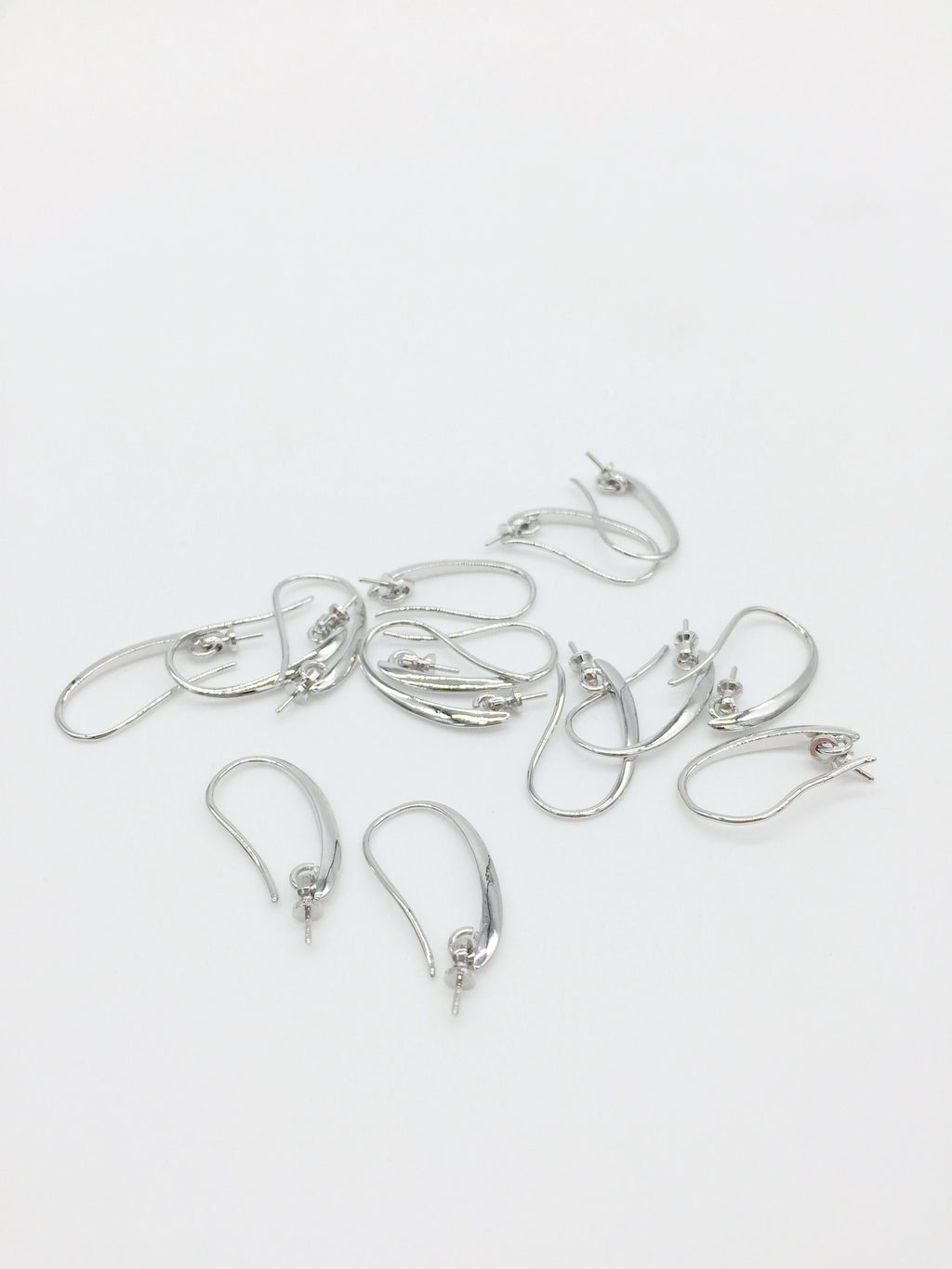 Rhodium plated earring hooks with pearl peg bails for half-drilled pearls/beads