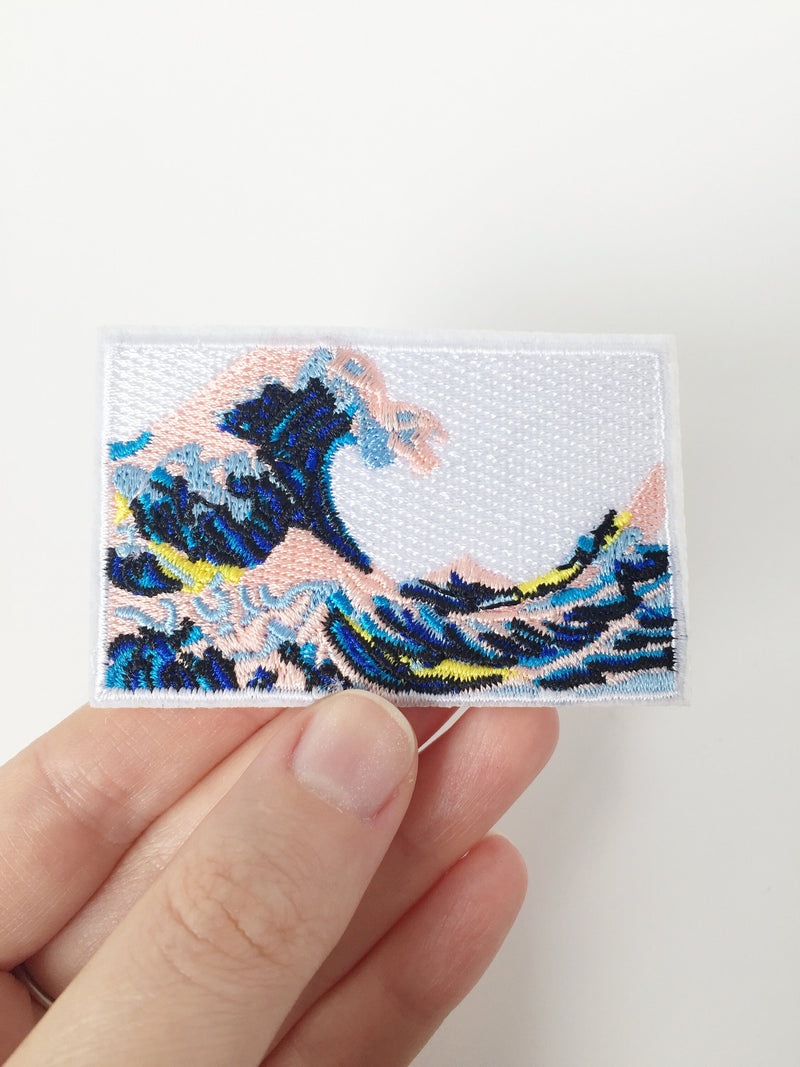 Embroidered ocean wave iron-on patch, inspired by the Japanese Great Wave off Kanagawa painting art