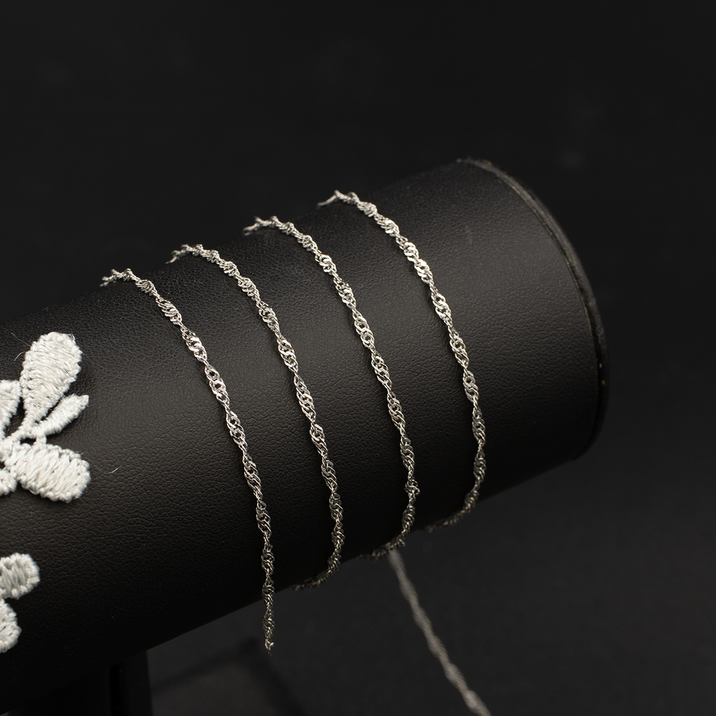 Stainless steel singapore chain, waterproof and hypoallergenic, with soldered links, for permanent jewellery making.