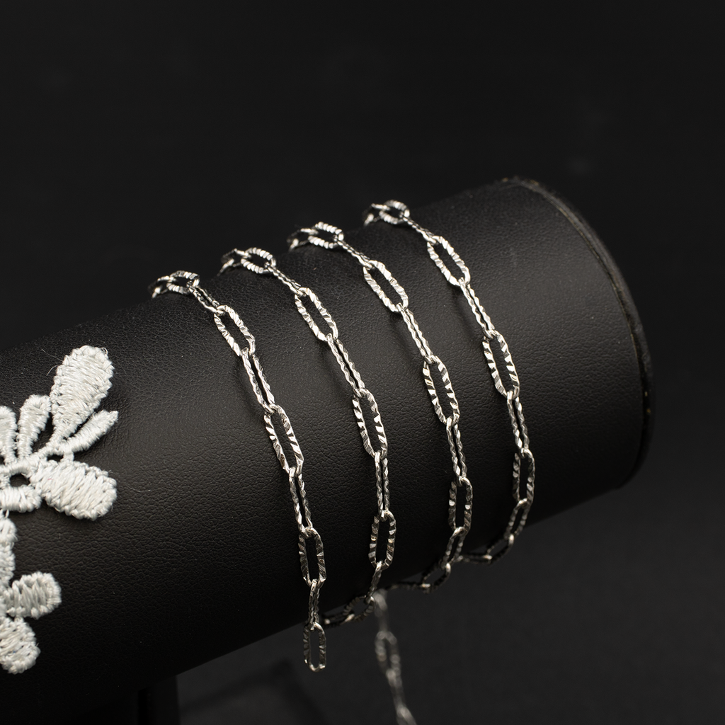 Stainless steel starburst paperclip chain, waterproof and hypoallergenic, with soldered links, for permanent jewellery making.